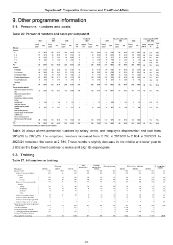 Table 26 above shows personnel numbers by salary levels, and employee dispensation and cost from
