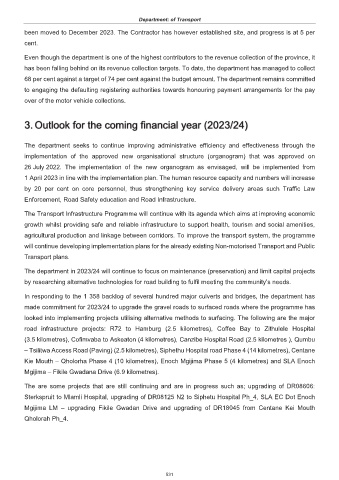 The department in 2023/24 will continue to focus on maintenance (preservation) and limit capital projects