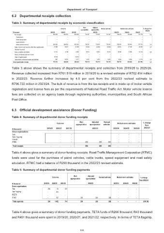 Table 4 above gives a summary of donor funding receipts. Road Traffic Management Corporation (RTMC)